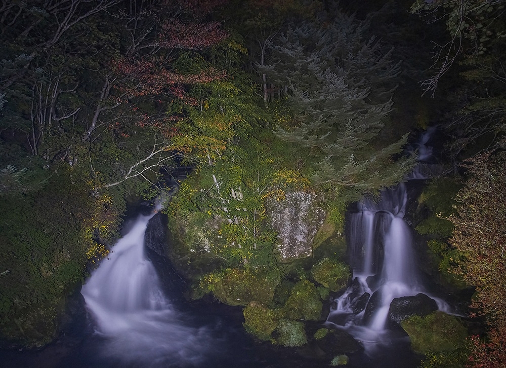 奥日光の温泉に宿泊した時、竜頭の滝が近くにあることを思い出して深夜LEDライトのセルフライティングで撮影してみました。
