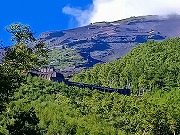 吉田口登山道の中継地点の馬返し(標高1450m)から登山開始。 このコースは江戸時代の富士講、明治時代の観光登山で栄え途中には宿泊所が何軒もありました。 昭和39年に富士スバルラインが開通し、今日ある山小屋は佐藤小屋(通年営業)のみになりました。