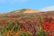 23日晴れ、朝の気温3℃(湯浜温泉) 栗駒高原のいわかがみ平で紅葉狩りです。紅葉の名所“神の絨毯”は紅葉終盤に加え2日前の降雪の影響で一面焦茶色、登山道からの鑑賞は諦めました。またの機会に訪れたいと思っています。
