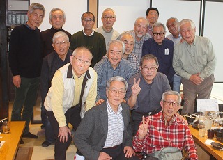 開会後忽ち1時間50分が経過。恒例の高野君によるスナップ写真、記念写真に各自の風貌が納まり、来年健康で再会できることを誓いおひらきとなった。2時間での話では足りないので、三々五々近くの喫茶店へ繰り出していった。